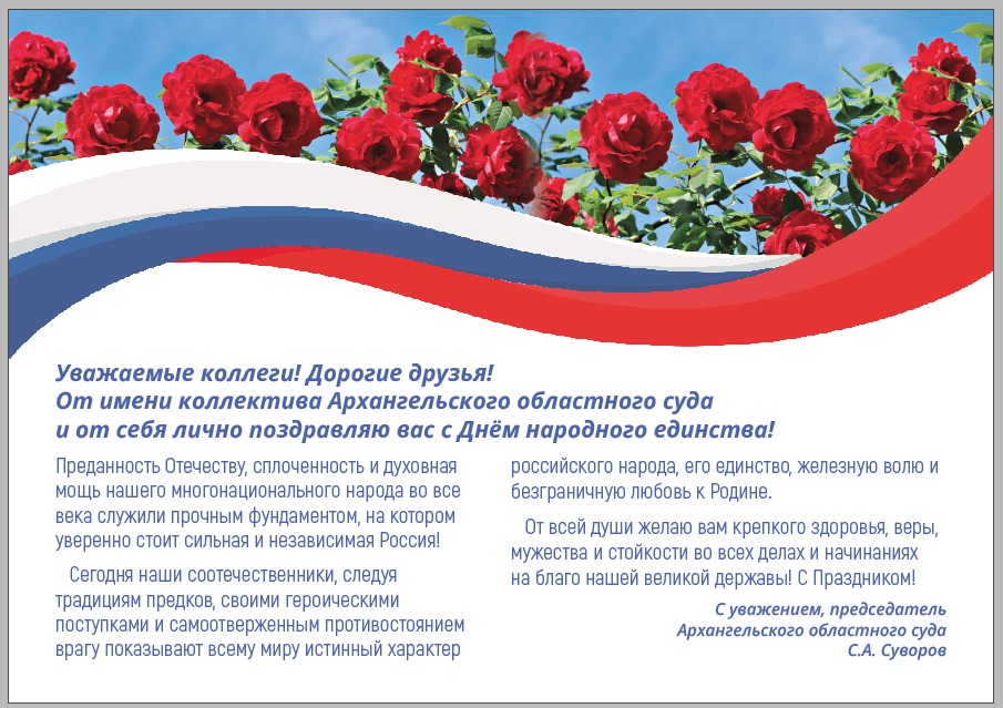 Поздравление председателя Архангельского областного суда с Днем народного единства!![]() |